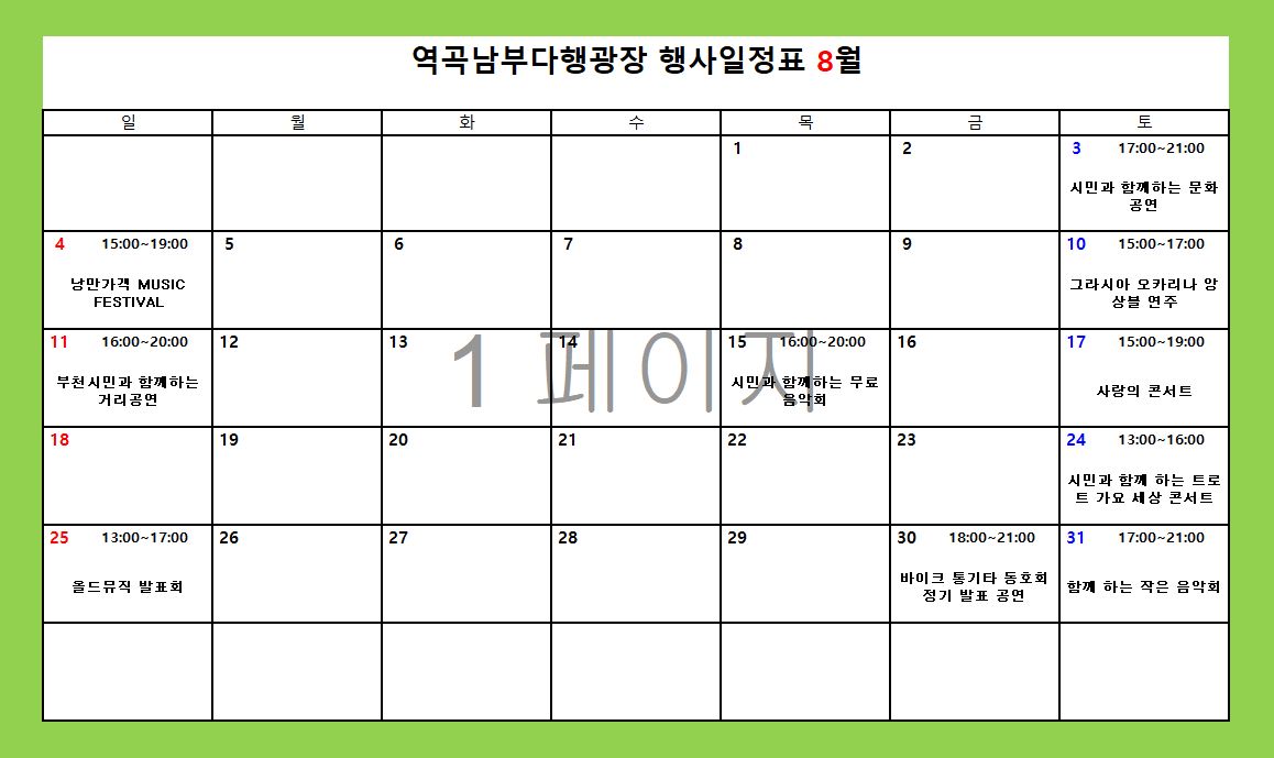 | [역곡남부다행광장] 8월 행사일정안내 | |||||