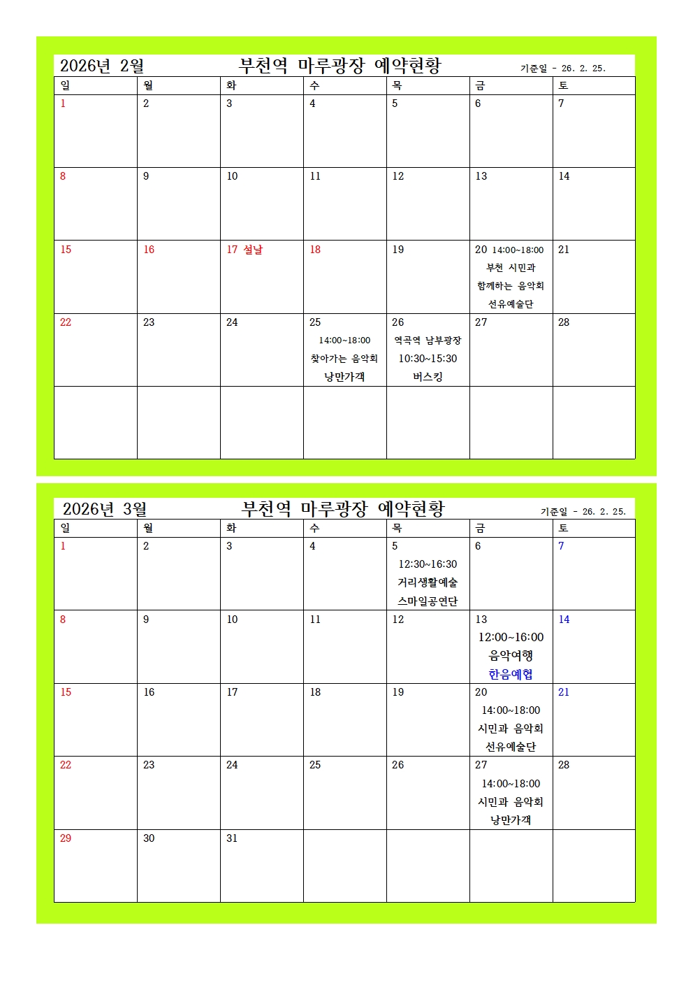 | ☆부천시 광장(부천마루광장, 부천역 남부광장, 송내무지개광장, 역곡역 남부광장) 대관신청 안내☆ | |||||